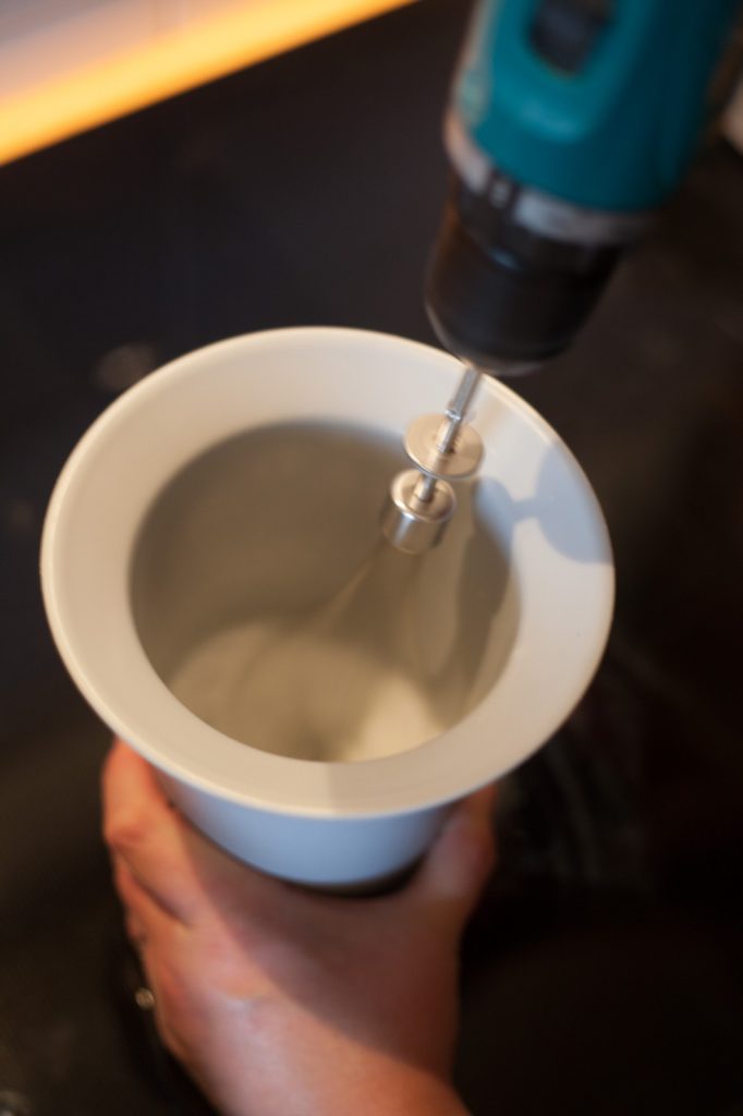 Wenn das Küchengerät kaputt ist, lässt sich der der Schneebeseneinsatz auch super in den Akkuschrauber einspannen. In unserem Haushalt nicht nur vorübergehend.