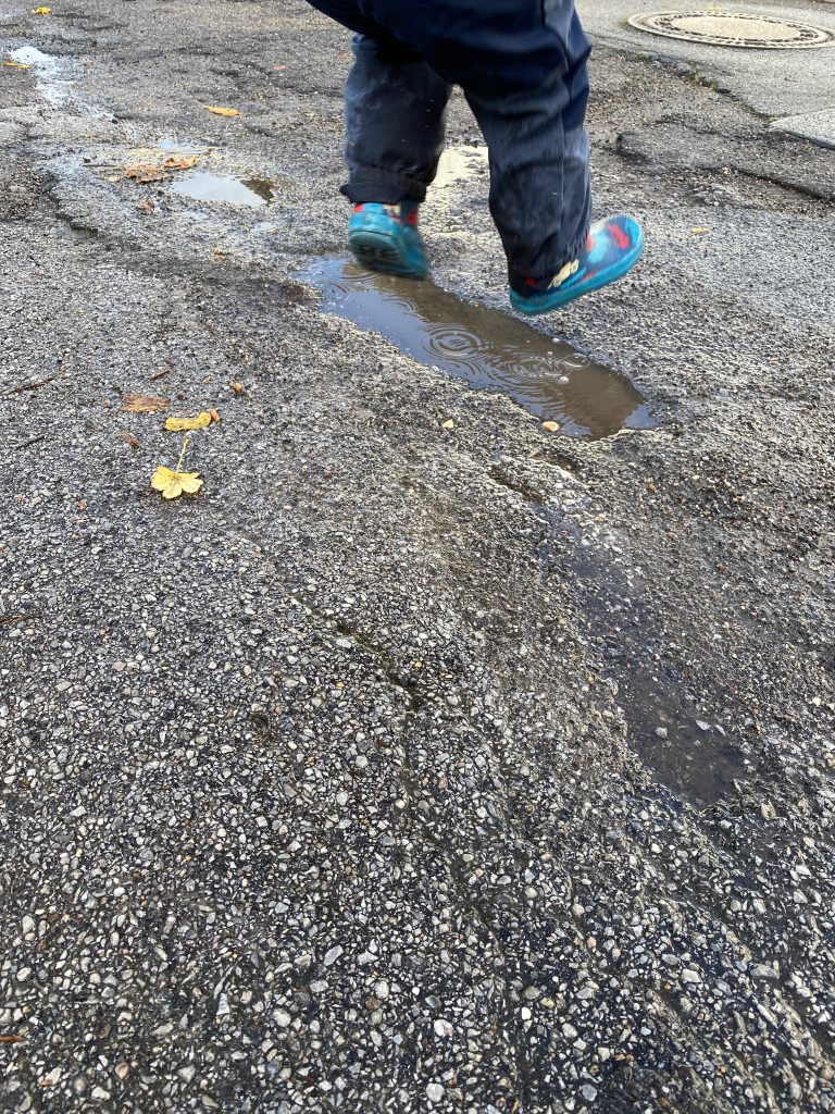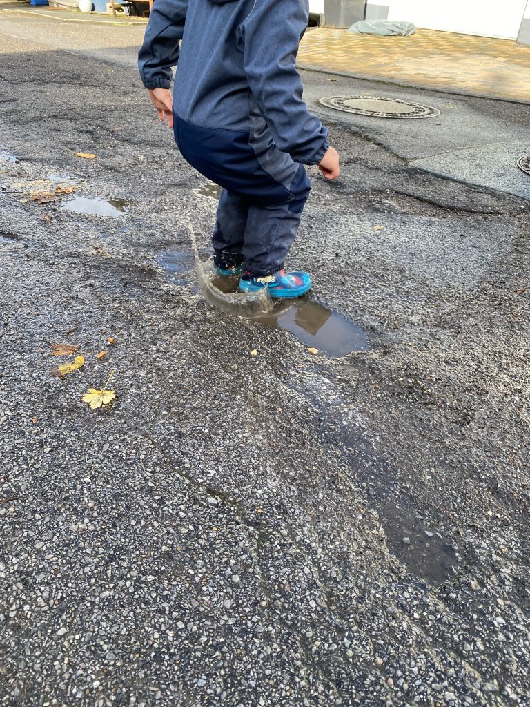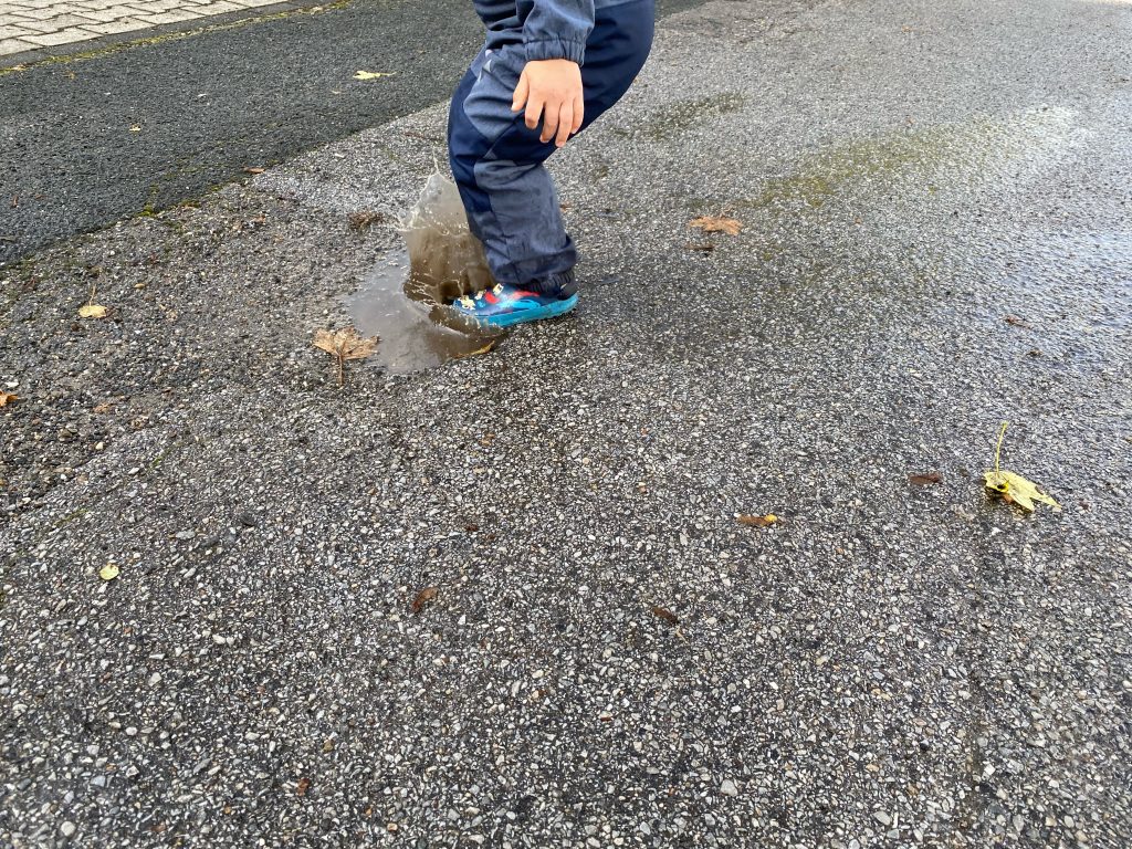 Komm wir gehen Pfützen hüpfen. Das hat Spaß gemacht.
