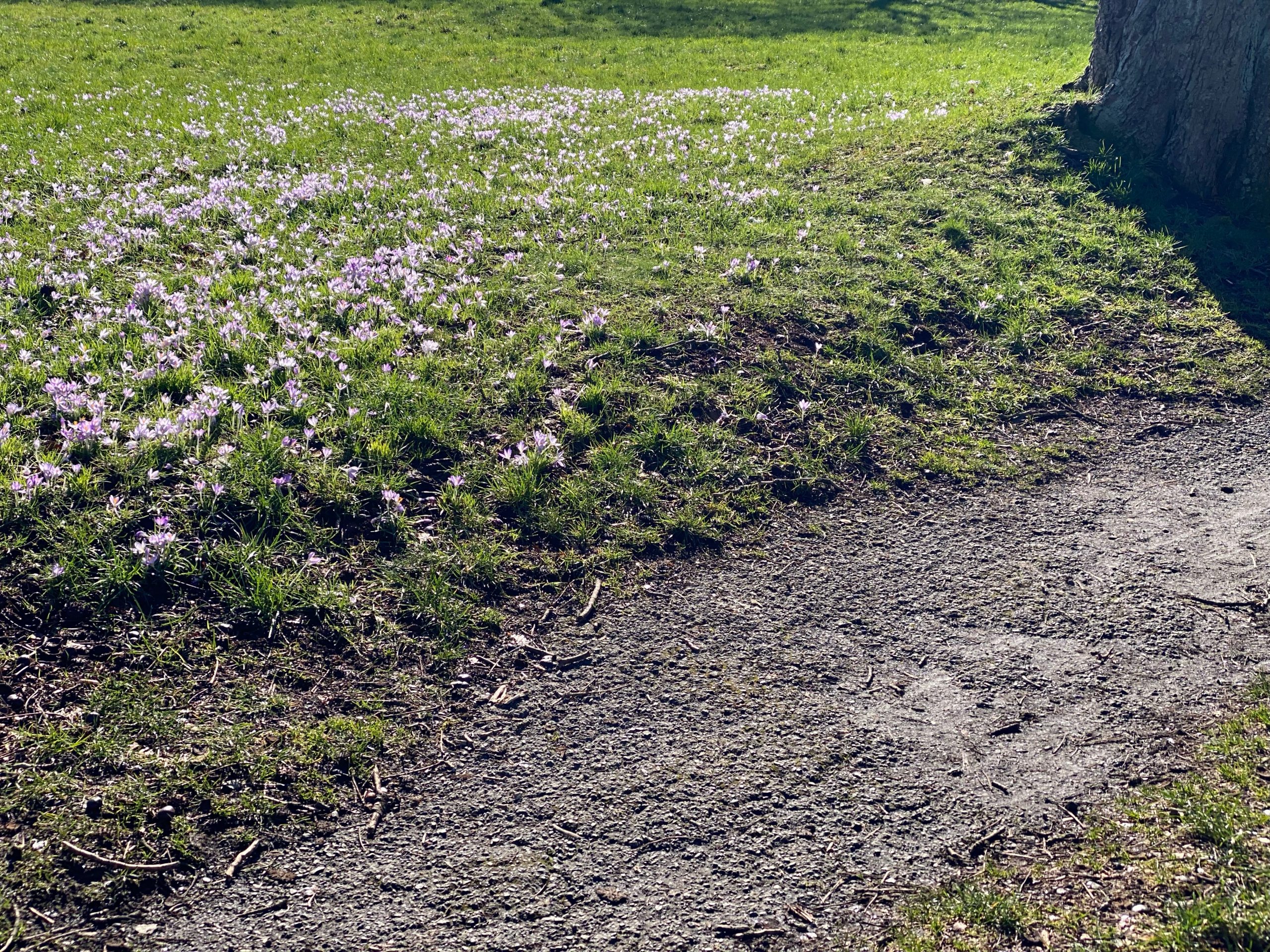 Wie schön, der Frühling kommt! Überall recken die Krokusse ihr Hälse in die Luft und begrüßen die schon wärmende Sonne. Besonders schön finde ich sind diese kleinen Felder unter den Bäumen. Wir haben in unserem Garten einen tollen alten Baum. Jahrelang habe ich versucht, so ein wunderbares Krokuskissen unter seinem Wipfel zu pflanzen. Hier und da reckte sich ein Pflänzchen! Dieses Jahr dann der Durchbruch! Ein erstes kreisrundes Krokusfeld… wenn auch noch etwas spärlich…