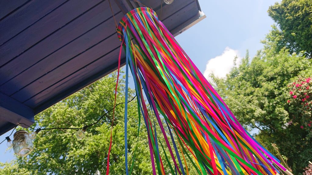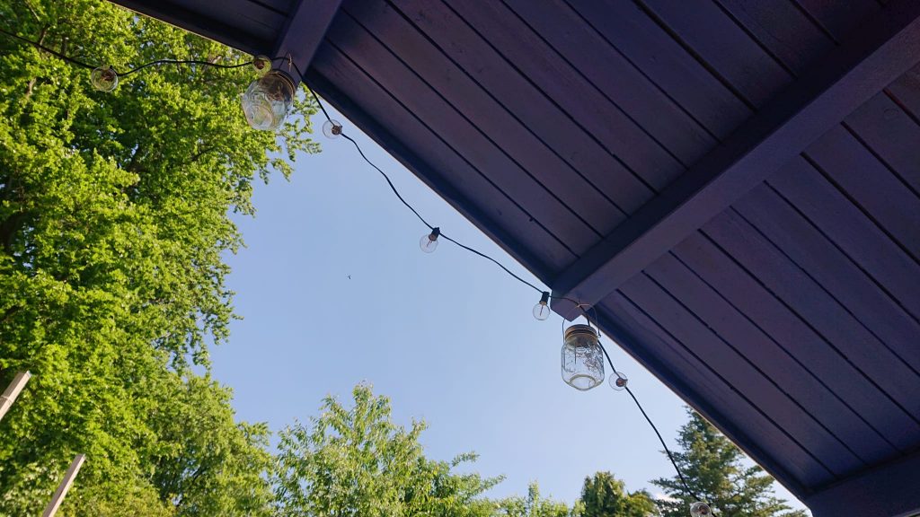Bis auf den Rasen hat es sich noch nicht bewegt. Im Moment steht es noch unter dem Gartenhausvordach, hat aber den Vorteil, dass man es sich darauf auch bei Regentropfenwetter gemütlich machen kann – also quasi jetze.