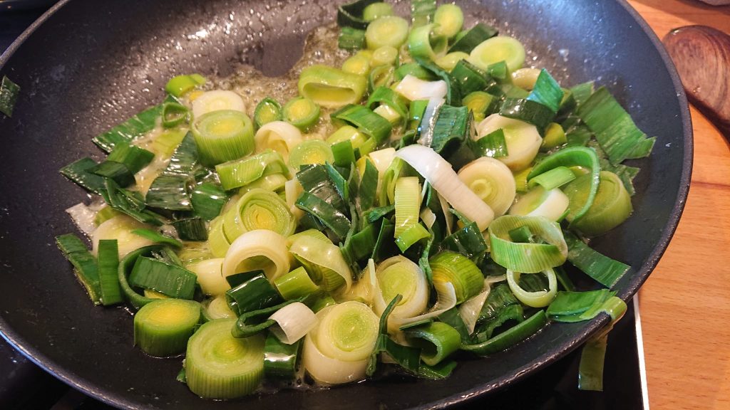 Die Kartoffeln werden gewürfelt, der Lauch in Ringe geschnitten. Zusammen in Butter anbraten, mit der Gemüsebrühe ablöschen, ca 15 Minuten kochen lassen und leicht pürieren. Den Lachs kurz anbraten und in kleinen Stücken zur Suppe geben. Sahne hinzufügen, noch einige Minuten ziehen lassen. Mit angebratenem Gemüse der Saison und Dill dekorieren. Das Rezept habe ich hier gefunden und nach meinem Geschmack angepasst.