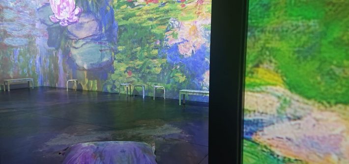 Ein bisschen baden gehen im Lichtersee, kann man bei der Ausstellung Monets Garten in Mülheim. Gemütlich in den großen Kissen liegen, sich mit gemaltem Licht berieseln lassen, Farben dirigieren und davon wandern sehen. In der verspiegelten Mitte lässt sich auch …
